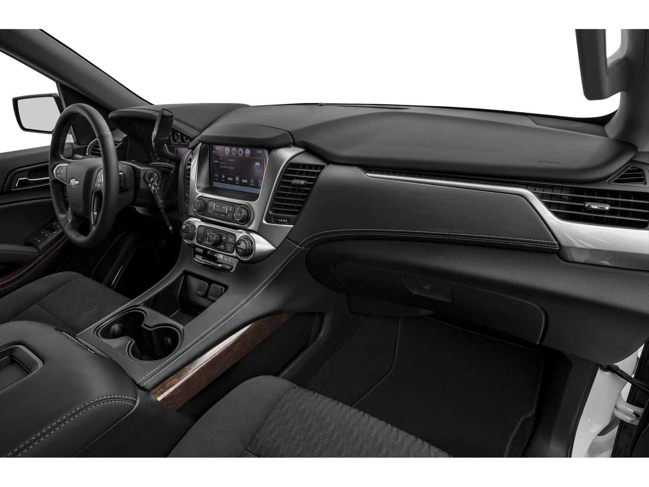 SUN, ENTERTAINMENT AND DESTINATIONS PACKAGE, (CF5) power sunroof, (U42) rear seat DVD entertainment system and (IO6) 8" diagonal color touch-screen Navigation with Chevrolet Infotainment, WHEELS, 22" X 9" (55.9 CM X 22.9 CM) 6-SPOKE CHROME MULTI-FEATURED DESIGN, LUXURY PACKAGE includes additional 9 months of SiriusXM Radio, (AS8) power fold third row 60/40 split bench seats, (ATH) Passive Entry System, (ATT) second row power release 60/40 split folding bench seat, (BTM) Keyless Start, (DL3) outside heated power-adjustable, power-folding mirrors, (KA6) heated second row seats, (N38) memory power tilt and telescopic steering column, (TC2) hands free liftgate, (T3U) fog lamps, (UD5) Front and Rear Park Assist, (UFG) Rear Cross Traffic Alert, (UKC) Lane Change Alert with Side Blind Zone Alert and (UVD) heated steering wheel and color key rear fascia trailer hitch closeout, ENTERTAINMENT SYSTEM, REAR SEAT, BLU-RAY/DVD with remote control, overhead display, Wi-Fi wireless projection capability, two 2-channel wireless digital headphones, auxiliary HDMI/MHL audio/video input and 2 USB ports, SEATS, SECOND ROW BUCKET, POWER RELEASE, AUDIO SYSTEM, 8" DIAGONAL COLOR TOUCH-SCREEN NAVIGATION WITH CHEVROLET INFOTAINMENT AM/FM stereo with seek-and-scan and digital clock, includes Bluetooth® streaming audio for music and select phones; voice-activated technology for radio and phone; and Shop with the ability to browse, select and install apps to your vehicle. You can customize your content with audio, weather and more; featuring Apple CarPlay® and Android Auto® capability for compatible phone; 5 USB ports and 1 auxiliary jack, MIRRORS, OUTSIDE HEATED POWER-ADJUSTABLE, POWER-FOLDING AND DRIVER-SIDE AUTO-DIMMING with integrated turn signal indicators and ground illumination, ENGINE, 5.3L ECOTEC3 V8 WITH ACTIVE FUEL MANAGEMENT, DIRECT INJECTION AND VARIABLE VALVE TIMING includes aluminum block construction (355 hp [265 kW] @ 5600 rpm, 383 lb-ft of torque [518 N-m] @ 4100 rpm) (STD), TRANSMISSION, 6-SPEED AUTOMATIC, ELECTRONICALLY CONTROLLED with overdrive and tow/haul mode (STD), STEERING WHEEL, HEATED, LEATHER-WRAPPED AND COLOR-KEYED with theft-deterrent locking feature. Chevrolet LT with Satin Steel Metallic exterior and Jet Black/Dark Ash interior features a 8 Cylinder Engine with 355 HP at 5600 RPM*.