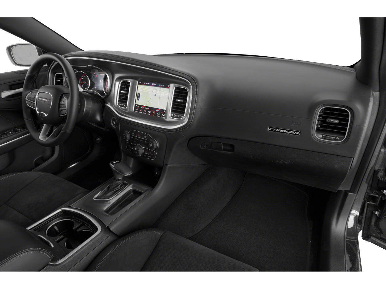 Gloss Black I/P Cluster Trim Rings, Black 1-Piece Performance Spoiler, Black Dodge Grille Badge, HEMI Blacktop Fender Badge, Satin Black Charger Decklid Badge, Satin Black Dodge Tail Lamp Badge, Blacktop R/T Badge, Wheels: 20" x 8.0" Black Noise Painted, (STD), (STD). Dodge R/T with Pitch Black Clearcoat exterior and Black interior features a 8 Cylinder Engine with 370 HP at 5250 RPM*.