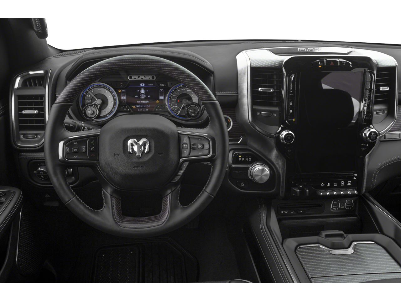 LIMITED LEVEL 1 EQUIPMENT GROUP Adaptive Cruise Control w/Stop & Go, Surround View Camera System, Parallel & Perp Park Assist w/Stop, Ventilated Rear Seats, Pedestrian Emergency Braking, Lane Keep Assist, WHEELS: 22" X 9" POLISH/PAINTED W/INSERTS Tires: 285/45R22XL BSW All Season, ANTI-SPIN DIFFERENTIAL REAR AXLE, TRANSMISSION: 8-SPEED AUTOMATIC (8HP75) (STD), ENGINE: 5.7L V8 HEMI MDS VVT ETORQUE Active Noise Control System, Heavy Duty Engine Cooling, Delete Alternator, Dual Rear Exhaust w/Bright Tips, HEMI Badge, 18" Aluminum Spare Wheel. Ram Limited with Delmonico Red Pearlcoat exterior and Indigo/Frost interior features a 8 Cylinder Engine with 395 HP at 5600 RPM*.