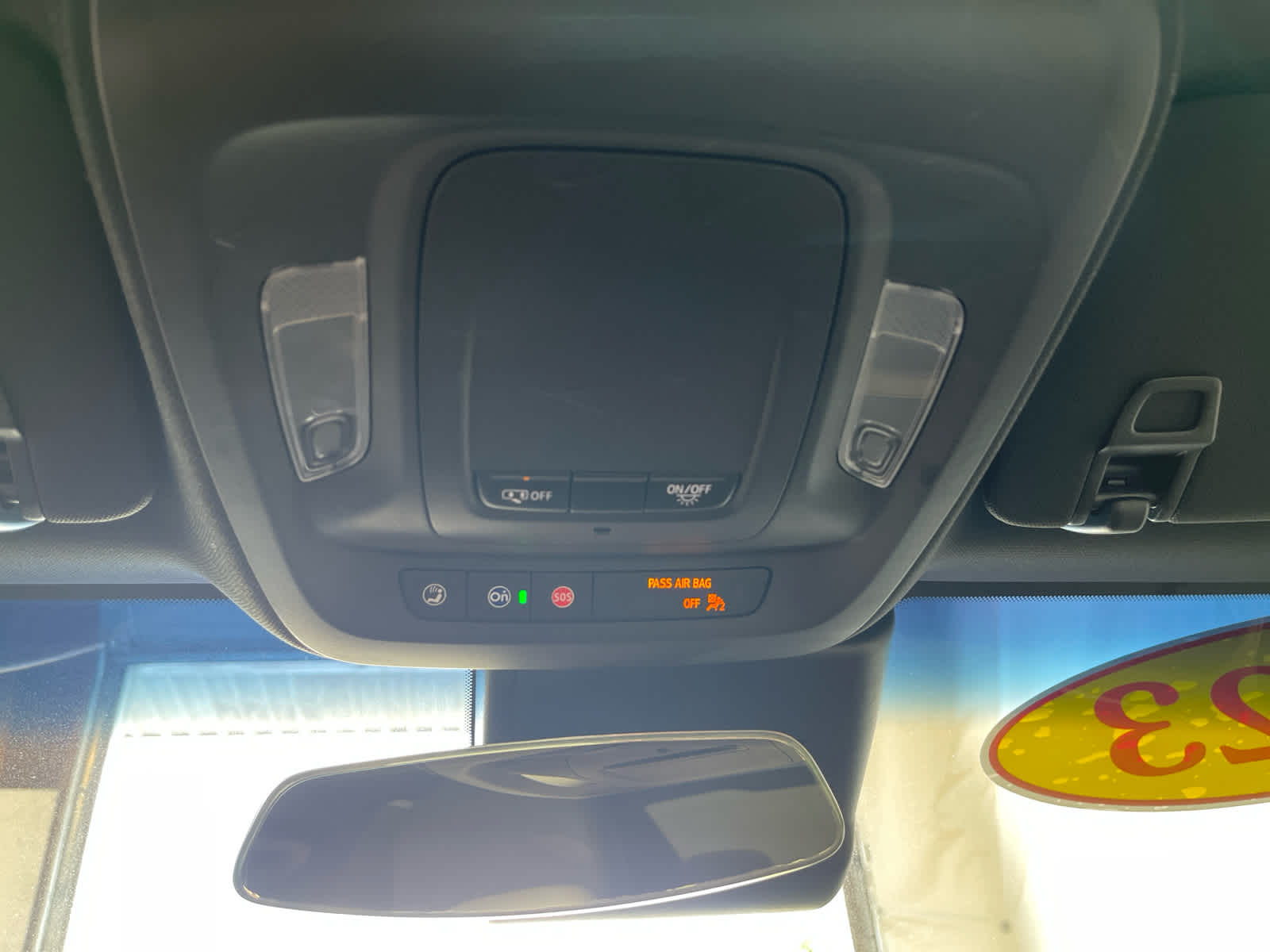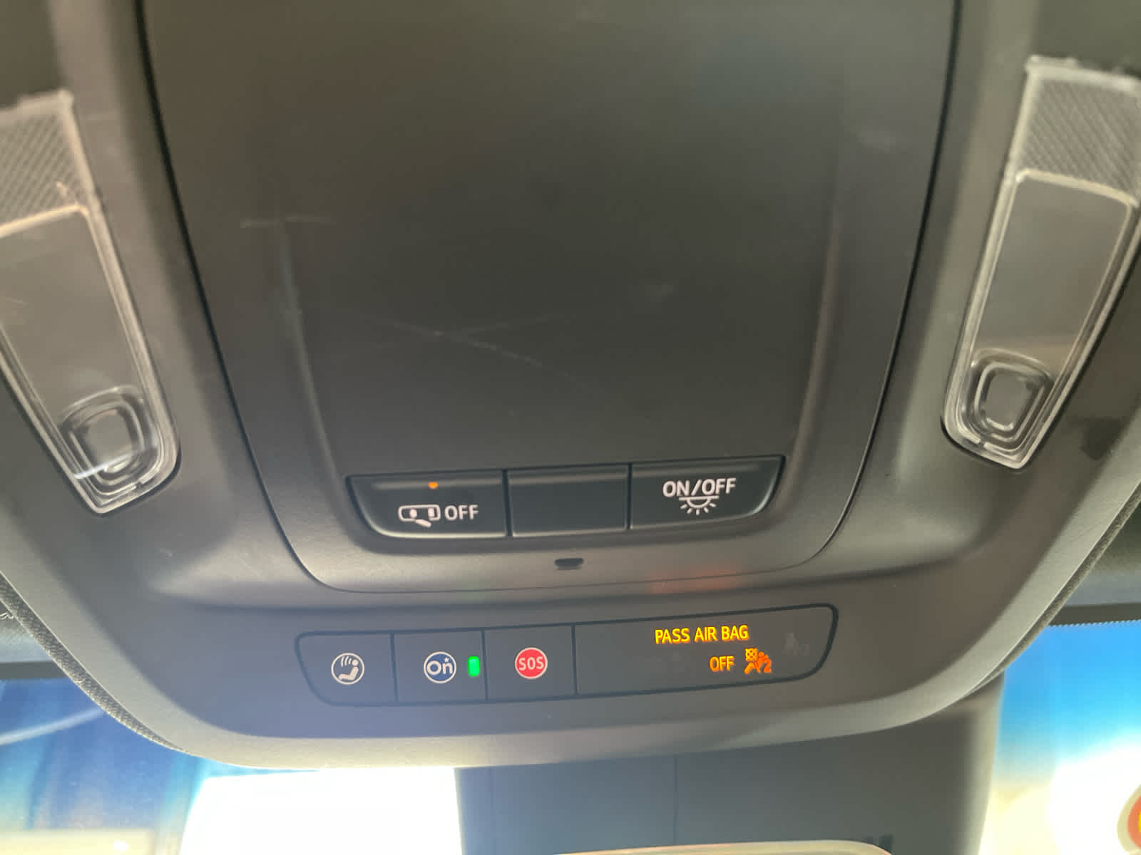 - Automatically switches the front passenger seat frontal and knee airbag on or off and illuminates a status light, in the overhead console, that indicates whether the airbags are on or off1