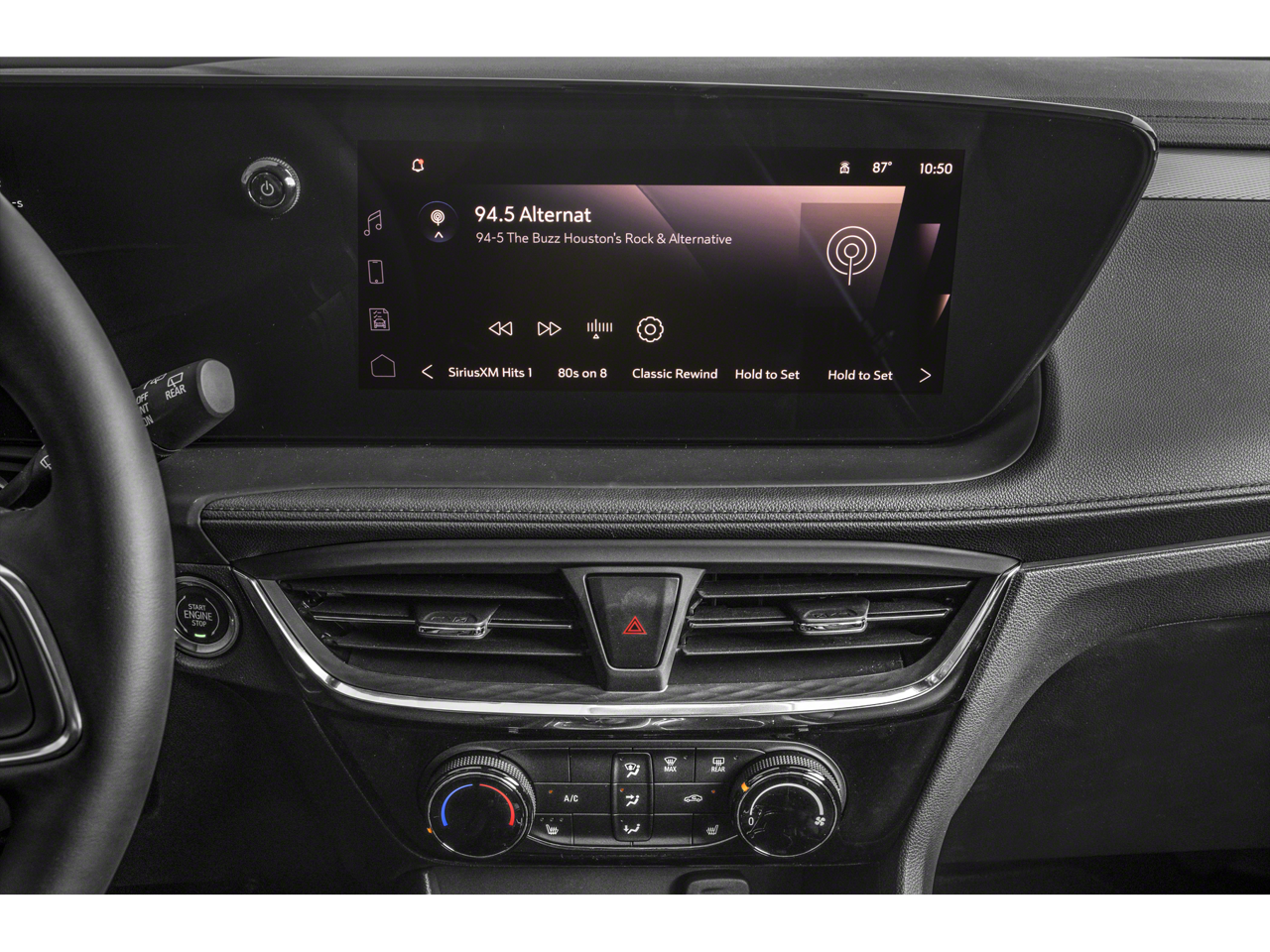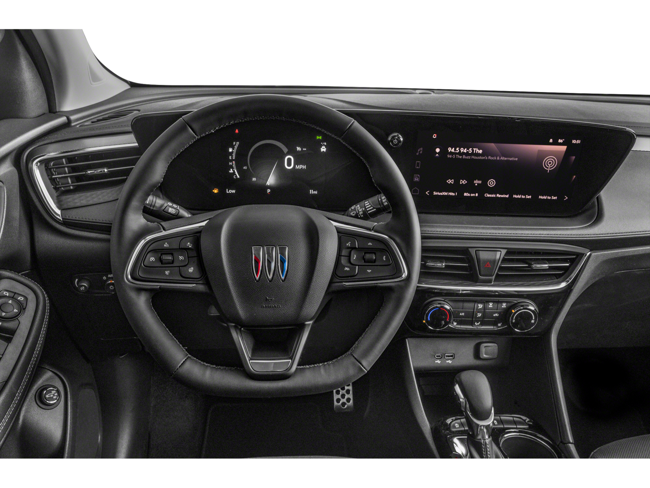 includes (A2X) driver 8-way power seat adjuster, (AL9) 2-way power driver lumbar control, (KA1) heated driver and front passenger seats, (UVD) heated steering wheel, (D7P) front passenger flat-folding seatback, (DA5) rear center armrest and (BTV) remote vehicle starter system, includes Remote Keyless Entry, Additional features for compatible phones include: Bluetooth® audio streaming for 2 active devices, voice command pass-through to phone, wireless Apple CarPlay® and wireless Android Auto® capable (STD), (GM-estimated 155 hp [115 kW] @ 5,600 rpm / 174 lb-ft torque [236 Nm] @ 1,600 rpm FWD/AWD models) (STD), (STD). Buick Sport Touring with Sunrise Red Metallic exterior and Ebony seats with Ebony interior accents interior features a 3 Cylinder Engine with 155 HP at 5600 RPM*.