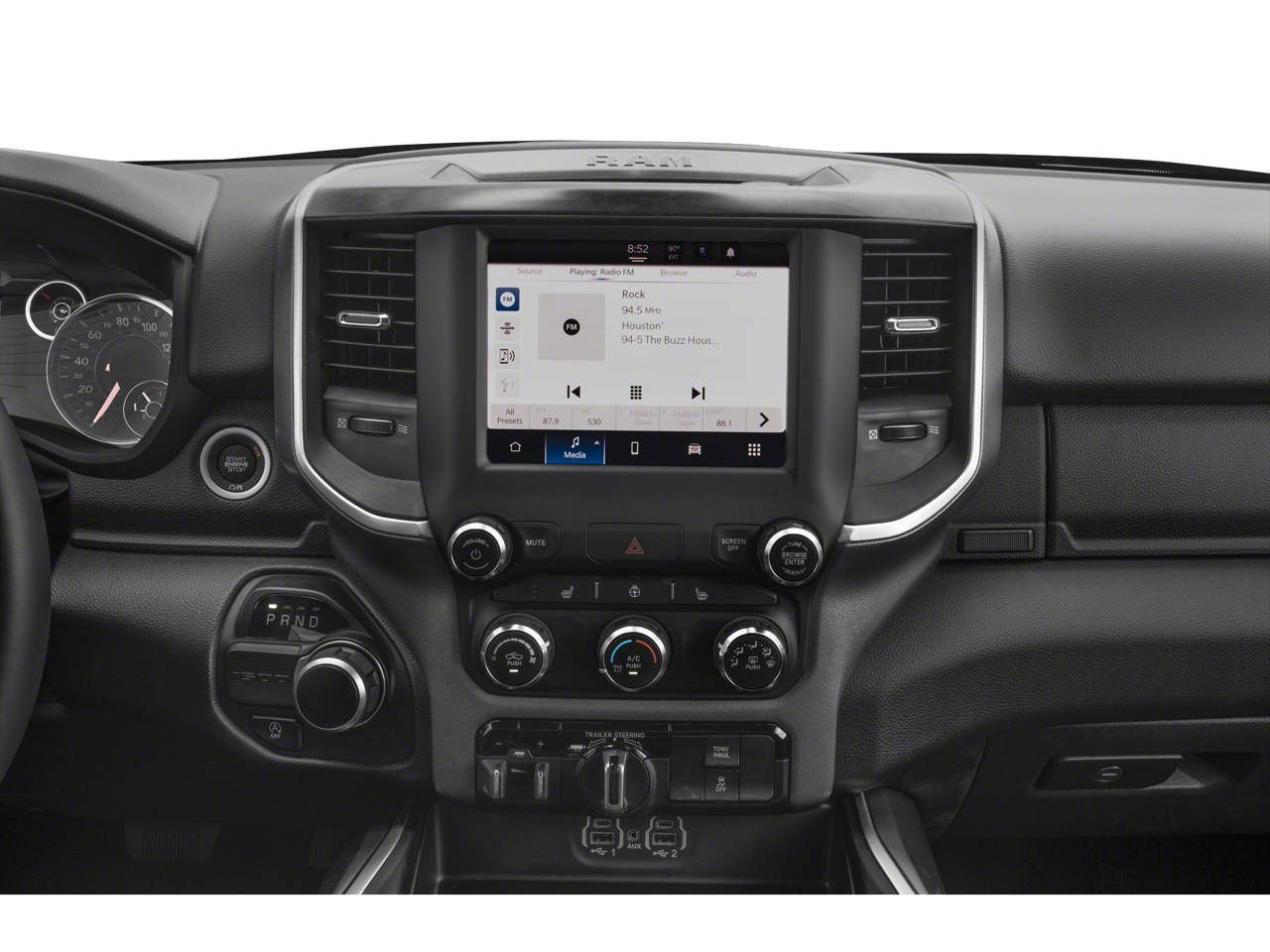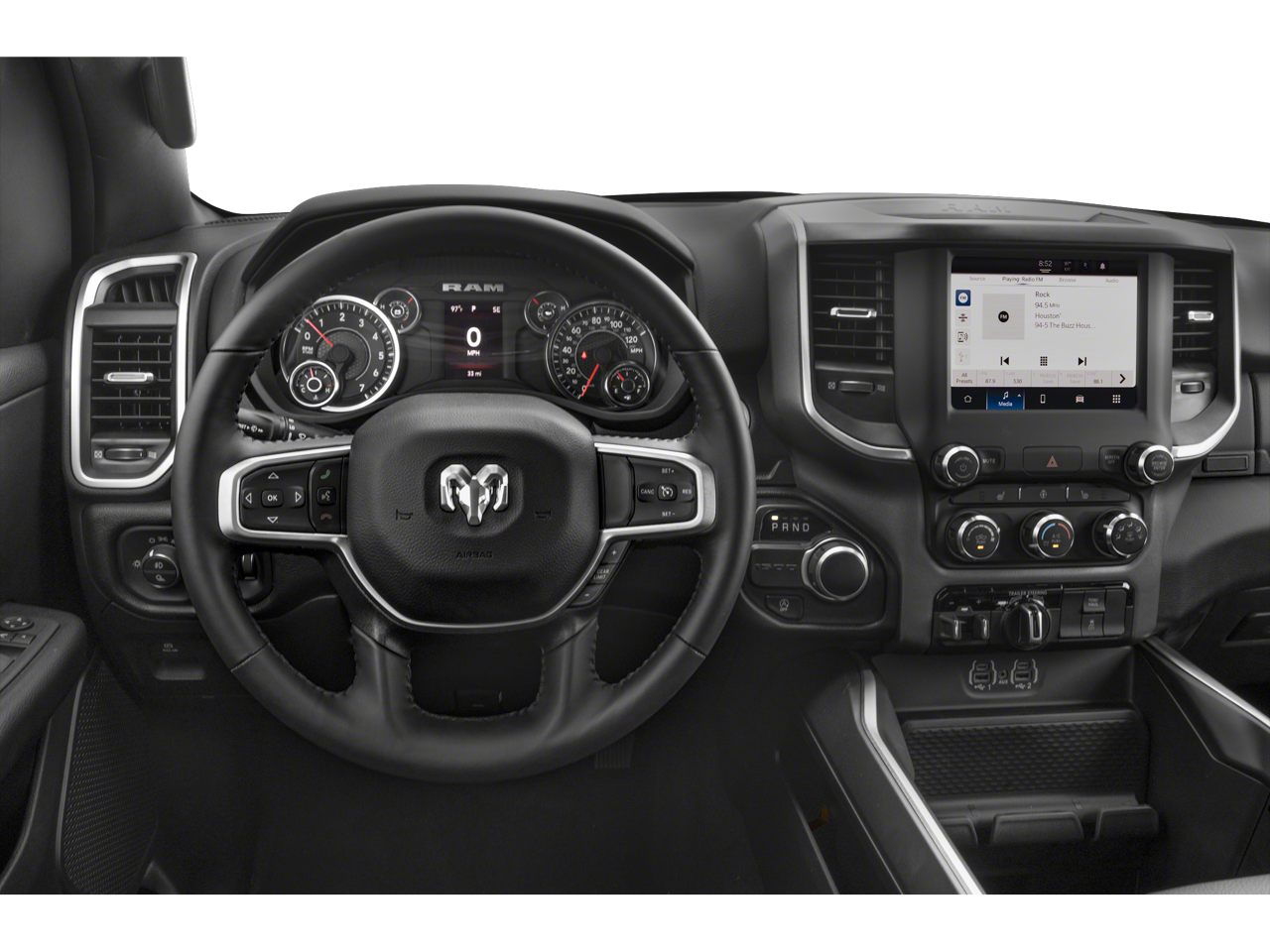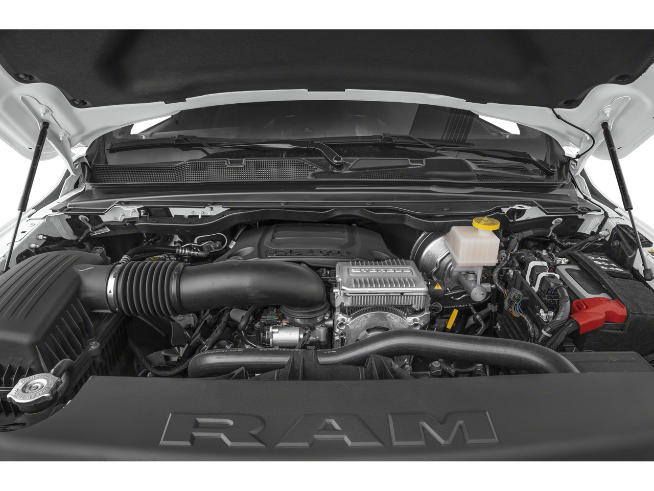 Active Noise Control System, Heavy Duty Engine Cooling, Passive Tuned Mass Damper, Dual Rear Exhaust w/Bright Tips, HEMI Badge, Tires: 275/55R20 OWL All Season, Bucket Seats, Full Length Upgraded Floor Console, TRANSMISSION: 8-SPEED AUTOMATIC (8HP75). Ram Laramie with Bright White Clearcoat exterior and Black interior features a 8 Cylinder Engine with 395 HP at 5600 RPM*.