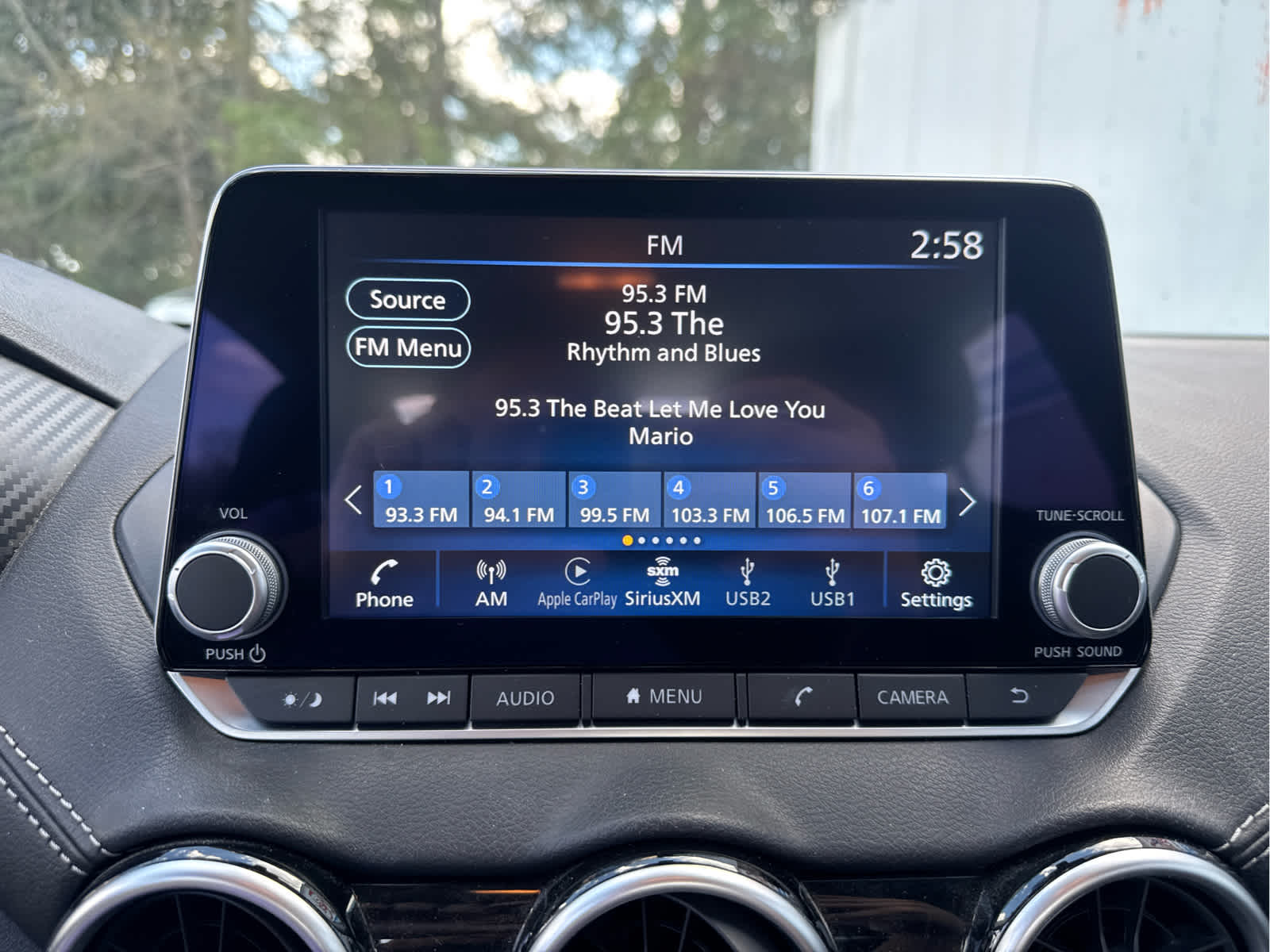 - Radio: AM/FM w/RDS/MP3/Aux-In -inc: 6 speakers plus 2 tweeters in A-pillar, 8" color display w/multi-touch control, streaming audio via Bluetooth®, Bluetooth® hands-free phone system, hands-free text messaging assistant, Siri Eyes Free, Google Assistant voice recognition w/Apple CarPlay and Android Auto, NissanConnect, (1) front USB connection port (type A), (1) additional front USB (type C), (1) charge-only USB (type A) center console and SiriusXM radio w/advanced audio features